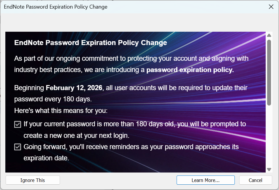 2026年2月12日(米国日時)以降、セキュリティ強化のため、すべてのクラリベイトアカウント(ウェブ版 EndNote のアカウントを含む)において