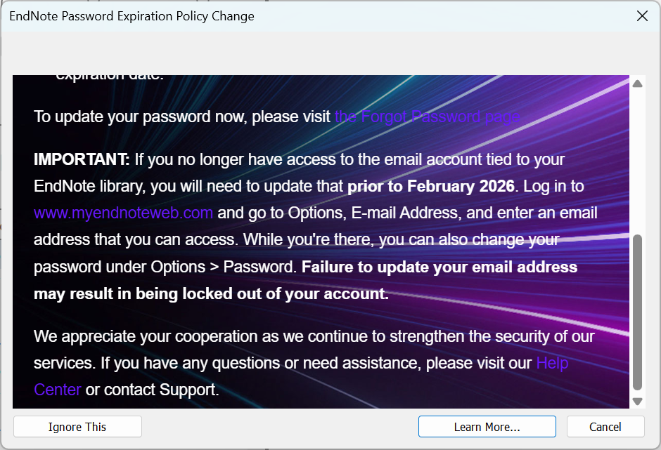 この度、EndNote の開発元であるクラリベイト社がウェブアカウントに関する運用方針を変更しました。