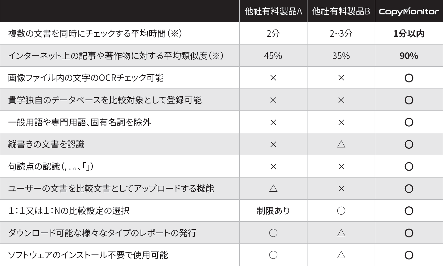 ・インターネットからのコピー&ペーストを正確に素早く検知ができる剽窃チェッカー
