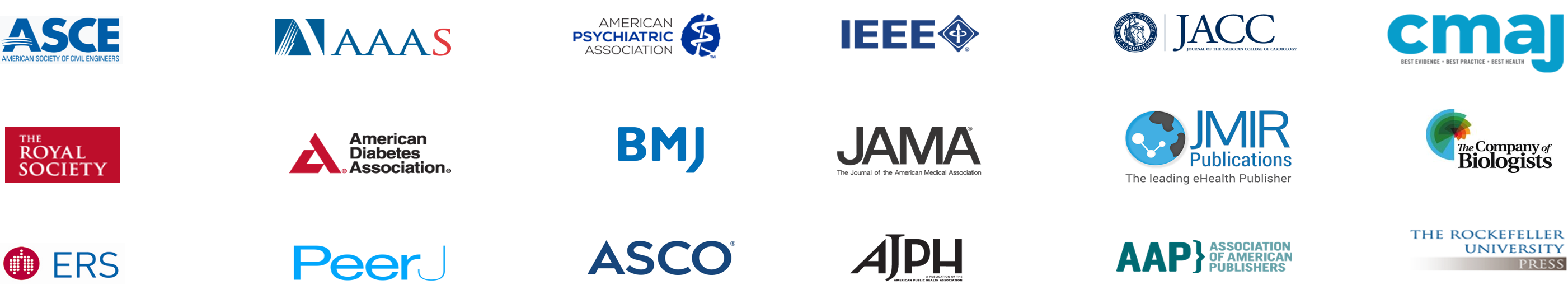AAAS、PNAS、オックスフォード大学出版局、Taylor & Francis、JAMA、BMJなど400以上の出版者のジャーナルや学術情報サイト合わせて約5,000がTrendMD Widgetを表示し、世界中の読者が無意識に利用しています。そこに貴コンテンツを表示します。