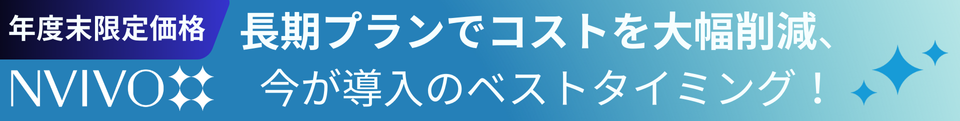 ※NVivo個人ライセンスは、購入者ご本人のみがご利用いただけるライセンスです。第三者への譲渡・貸与・共有はできませんので、あらかじめご了承ください。