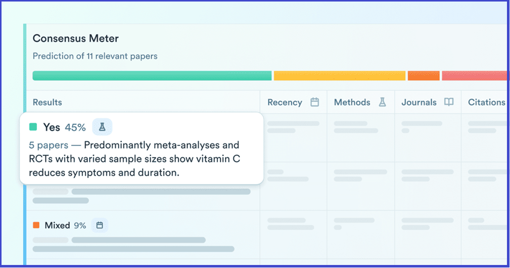研究者がテーマに取り組む手順をAIが実施します。Consensusがクエリの質問をサブ質問に分解し、最も適切な